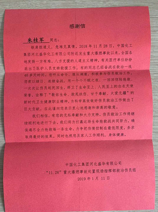 朱桂军同志是我院重症医学科副主任兼重症医学科病区主任,省内重症医学领域的知名专家,长期工作在救治危重患者的第一线,综合素质和业务能力十分突出,带领科室医护团队救治了无数挣扎在死亡线上的危重患者,多次受到患者及家属表扬,收到的锦旗和感谢信不计其数。