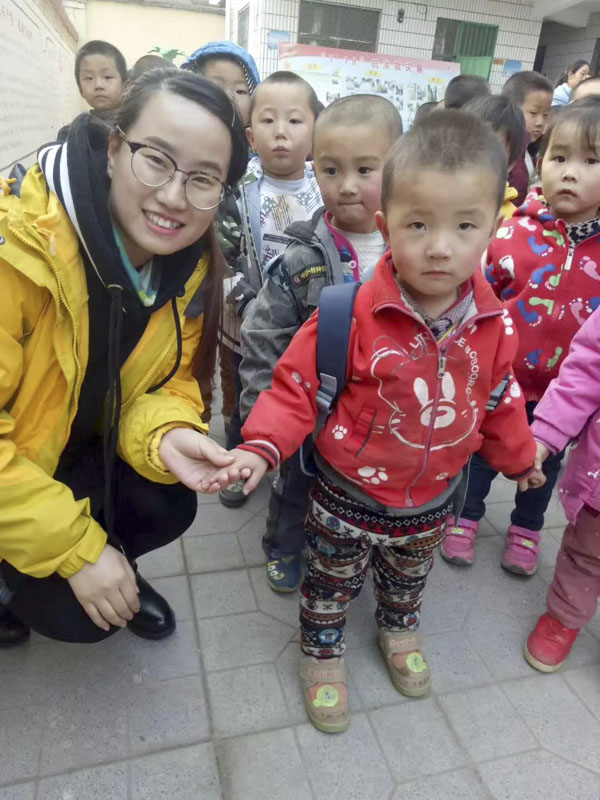 2015年的梅雨季节,位于石家庄西部的平山山区发生了泥石流,冲垮了平山霍宾台小学,她和一些爱心朋友得知消息后,自发凑了一些钱,给当地小朋友买了书包、笔、本,并自己开车送了过去。为了捐助有效,她们还与校方联系,对学生们进行语文、数学和英语的分别授课。2017年,她与爱心朋友们再次出发,主动联系老家井陉县塔寺坡村的学校,为孩子们带去学习用品并积极授课,还专门请了一位心理咨询师,给男生女生分别上课,教他们如何保护自己。她的努力也得到父母的大力支持,并一同加入进来。