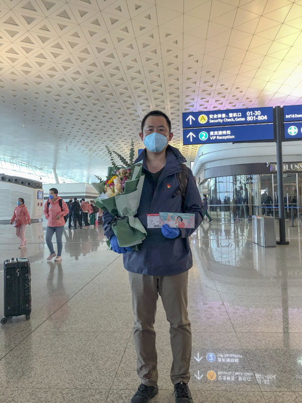 318日上午,河北支援湖北医疗队在方舱医院工作的575名队员陆续搭乘专机返冀,我院CT磁共振科技师长、第九批河北支援湖北医疗队队长刘辉随队返程,他们于1030分左右抵达正定国际机场,他将前往指定地点隔离休养。