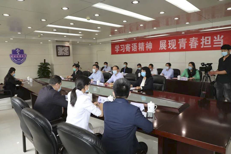 56日,学校召开“学习寄语精神,展现青春担当”青年师生座谈会,学习贯彻习近平总书记对新时代青年五四寄语精神。校党委书记翟海魂出席座谈会并讲话。我院重症医学科副护士长申康康作为援鄂青年医护代表在会上做了发言。