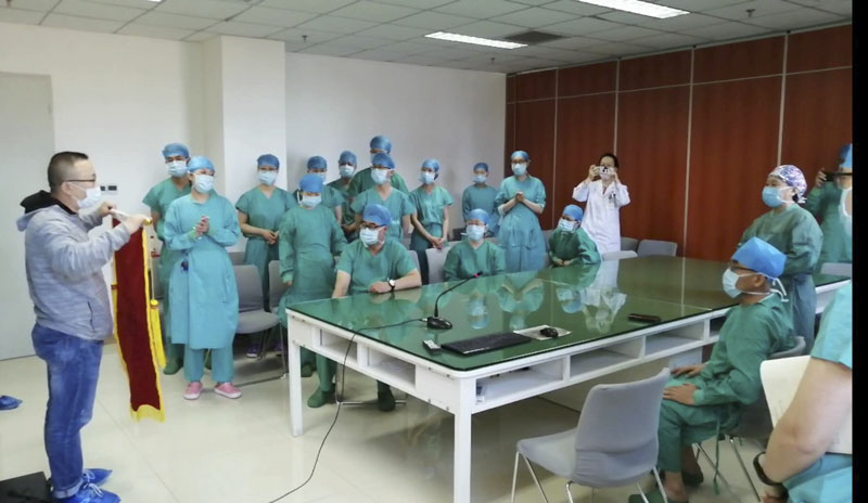 患者的儿子怀着十分激动的心情代表发言,“我们的漫漫求医路,北下南上,一路走来,甚是艰辛,但结果让我们感到欣慰。幸遇各位主任医德高尚,悬壶济世,是你们挽留我父亲的生命,拓宽了他的生命通道,将我们一家人从‘憋屈’的生活中解脱出来。做完手术那天,我们像过年一样喜悦,一扫近一年来的阴霾。各位主任给予我父亲的关注、关心和帮助,我们一家人将铭记在心”,他还将就医的艰辛过程和本次手术经历制作成视频进行展示。