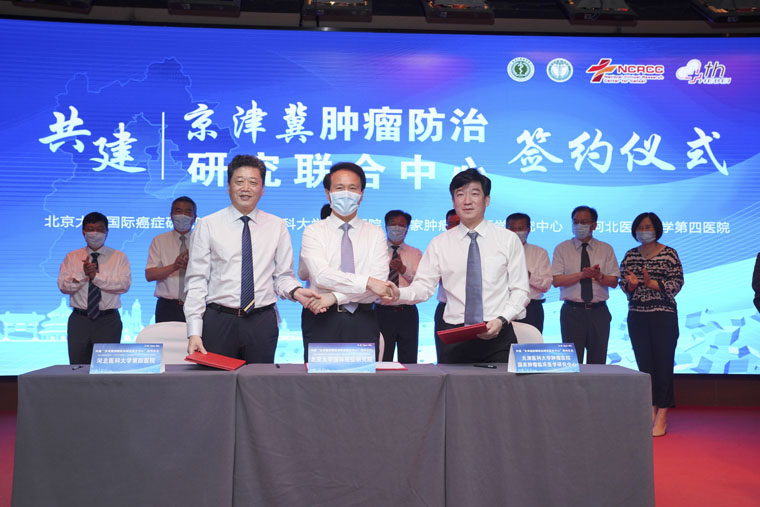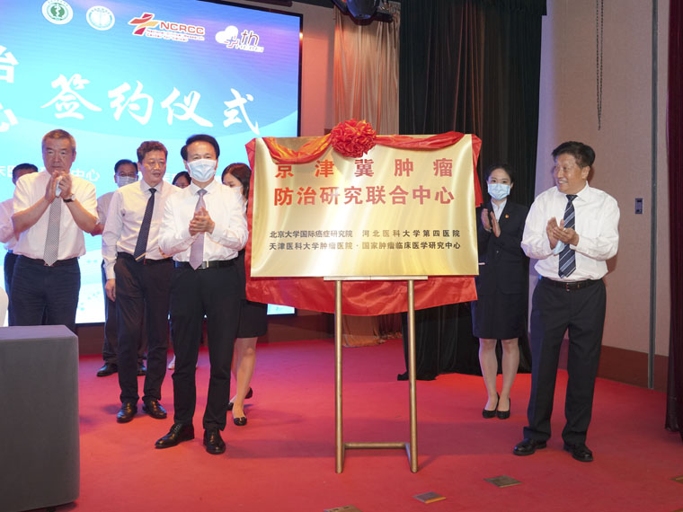 由北京大学国际癌症研究院、天津医科大学肿瘤医院(国家肿瘤临床医学研究中心)和我院共建的“京津冀肿瘤防治研究联合中心”于7月24日在天津揭牌成立。“中心”将重点围绕临床肿瘤学、肿瘤流行病学、肿瘤生物学、肿瘤药学、肿瘤免疫学、血液肿瘤学六大方向开展合作,多学科协同并进,促进京津冀及周边地区肿瘤防治研究水平的共同提高。