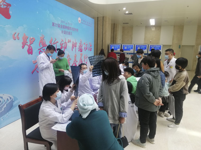讲座进行的同时,我院胸外科温士旺、妇科张军、放疗科周志国、消化内科范海燕4名专家与县医院相关肿瘤科室的医务人员在门诊一楼大厅进行了大型义诊活动。专家们热情、耐心地为前来就诊的患者提供专业解答,根据患者的不同情况,有针对性地提出科学、合理的治疗方案,并及时普及相关医疗知识。义诊活动持续进行了3个小时,会诊患者百余人,受到老百姓的一致称赞。