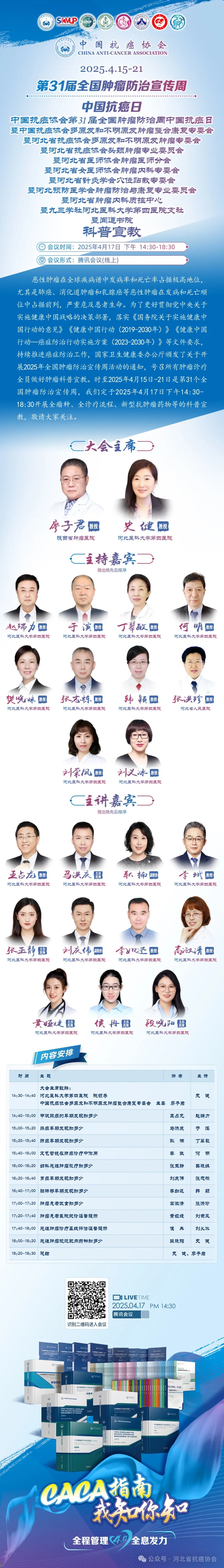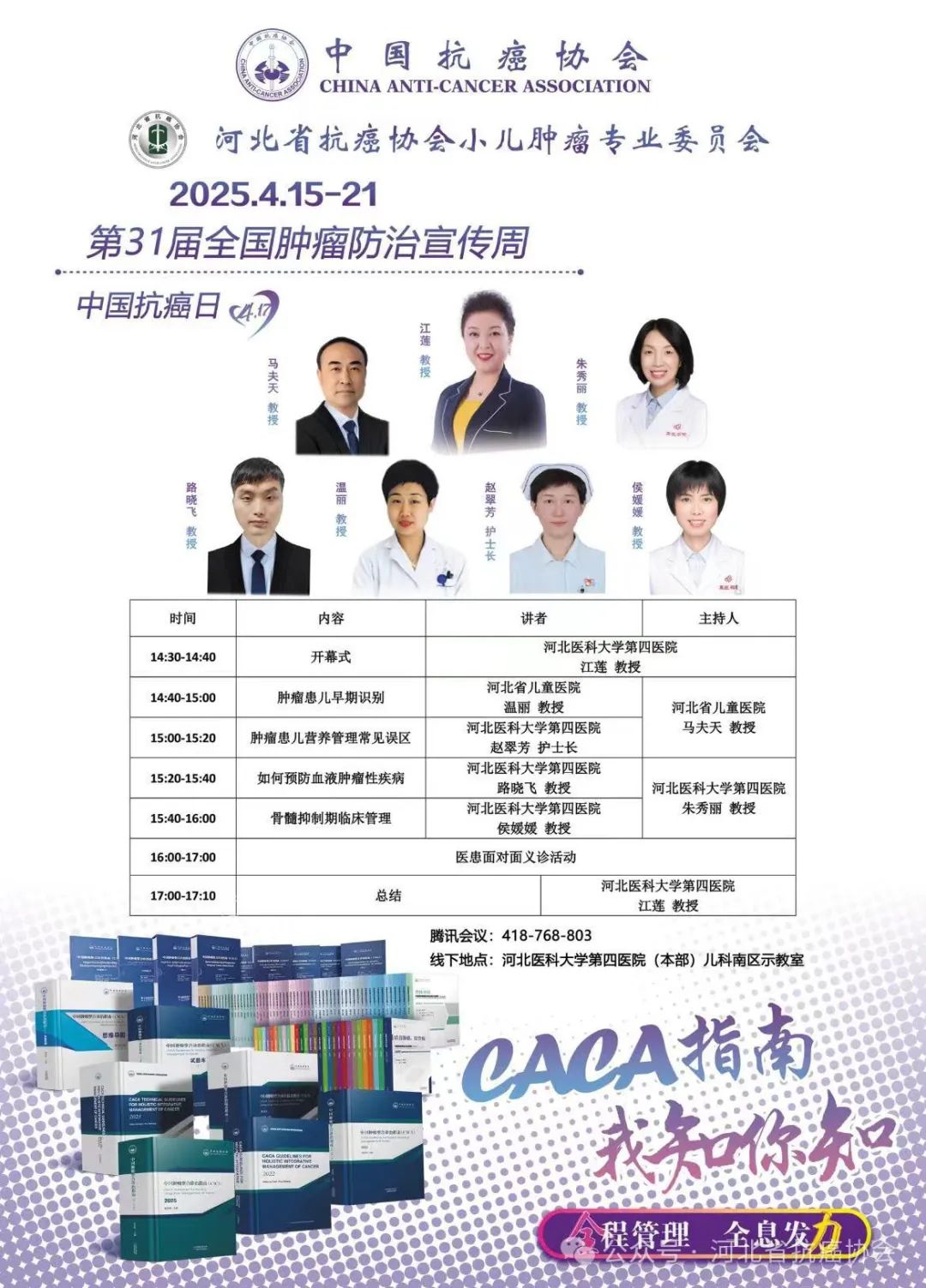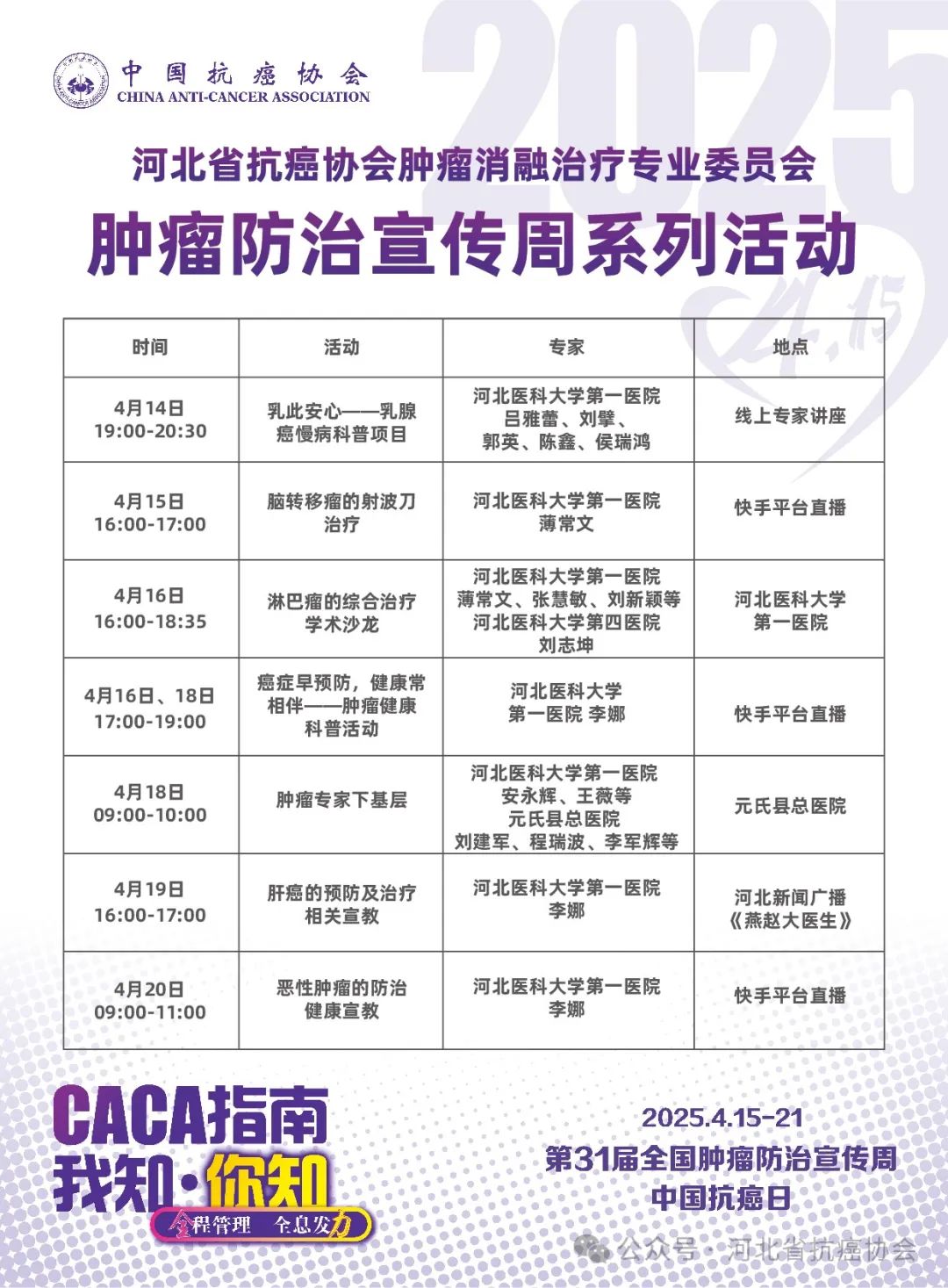 河北省抗癌协会2025年第31届全国肿瘤防治宣传周暨“中国抗癌日”活动预告