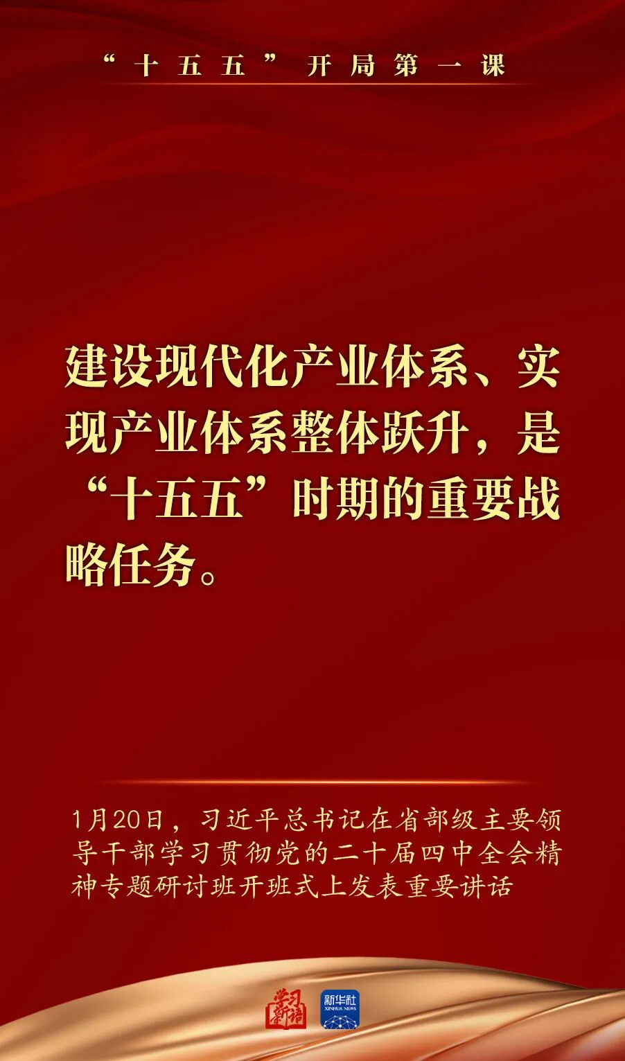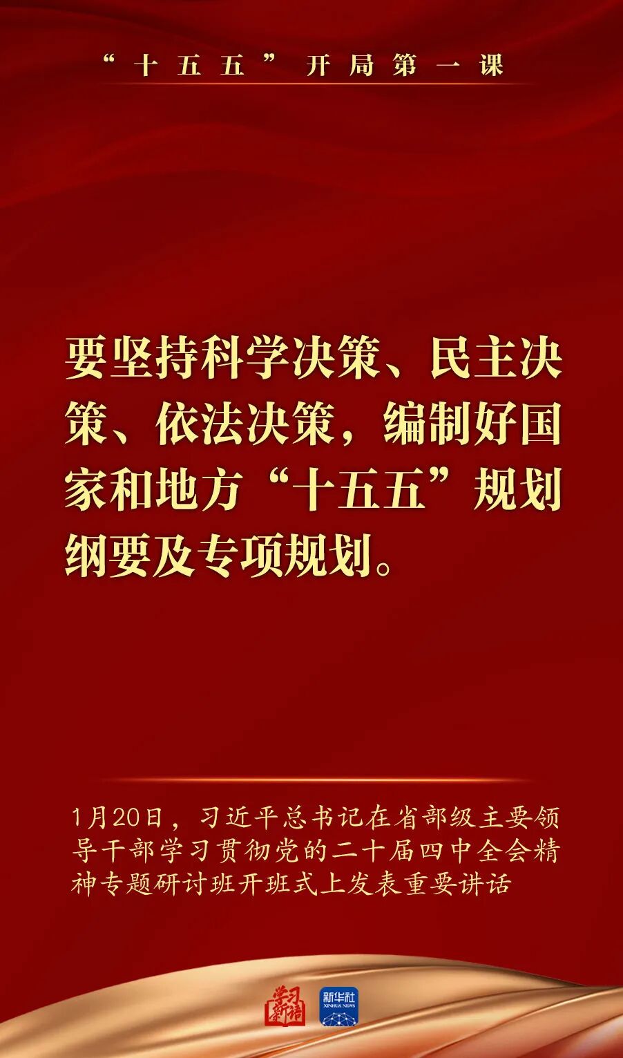 1月20日,省部级主要领导干部学习贯彻党的二十届四中全会精神专题研讨班在中央党校(国家行政学院)开班。习近平总书记在开班式上发表重要讲话强调,深入学习贯彻党的二十届四中全会精神,努力实现“十五五”良好开局。总书记讲话要点,一起学习领悟。