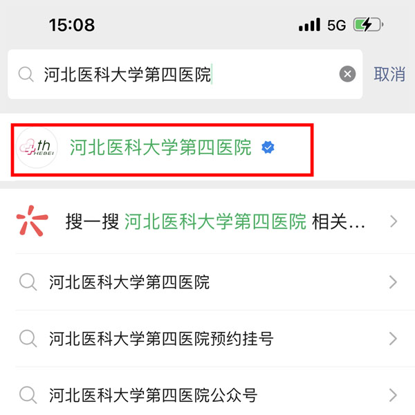 或,微信服务号搜索关注“河北医科大学第四医院”