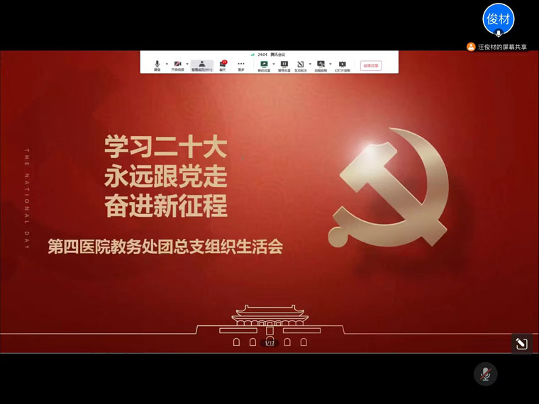 党的二十大报告指出,青年强,则国家强。作为新时代的中国青年,更作为一名年轻的党员医务工作者,要践行初心使命,加强临床专业能力学习,提升自我能力,做一个有理想、有抱负的时代青年,为医院的高质量发展尽绵薄之力,为国家的卫生健康事业做贡献,为中华民族伟大复兴添彩。(第九团支部 东院手术室 周俊杰)
