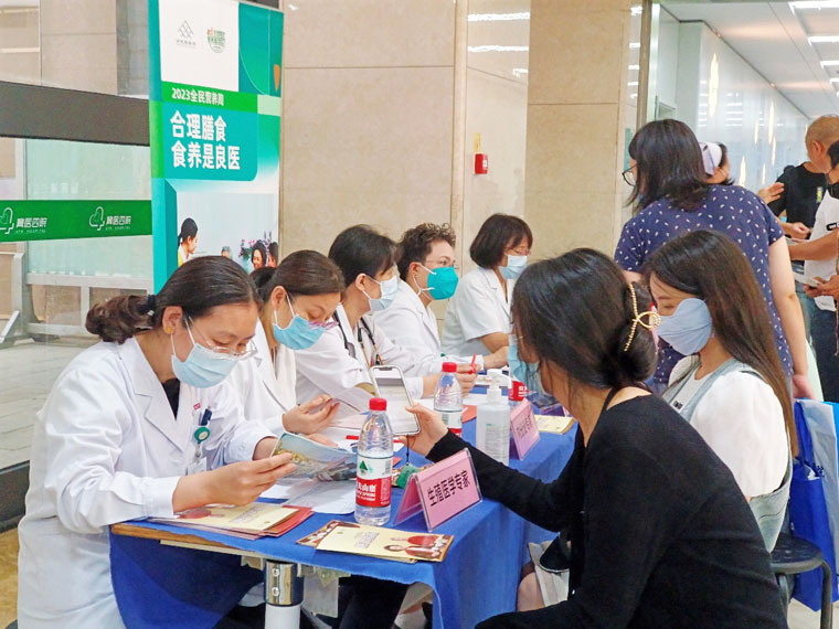 517日,临床营养科联合心血管内科、神经内科、内分泌科、生殖医学科等专家在医院门诊大厅举办了营养咨询义诊活动,立足于2023年新版高血压、高脂血症、糖尿病及儿童青少年生长迟缓食养指南,契合“食养是良医”的主题,为广大患者朋友提供有关日常饮食指导、降血压、降血脂、降血糖及备孕减重等医学咨询服务。医务人员针对适配“三高”等基础疾病的日常食养做指导和宣教,同时发放“中国居民膳食指南”等宣传册及限油壶、限盐勺,旨在让更多人了解营养相关知识,改善居民不良饮食习惯。很多来诊人员表示,“通过参加活动了解了很多日常饮食知识,认识到许多疾病的治疗和长期维持都和‘食养’脱不开关系,希望日后能有更多这样的机会了解营养。”