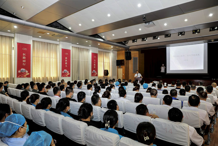 马景涛副院长结合后勤工作实际,紧紧围绕习近平新时代中国特色社会主义思想,带领大家认真学习了党的二十大报告精神。他对报告中15个部分进行分解和诠释,从不同角度深入浅出地讲述了国家支撑、科教兴国战略、文化自信、人与自然和谐共生、中国式现代化、全面从严治党等内容,并结合自身实际,从求知求学、从医经历等分享自己的初心使命。