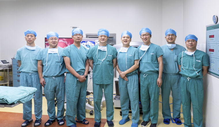 8月11日,我院外三科成功完成我国中东部地区首例机器人辅助下远程5G胃肿瘤切除术。为保证此次手术顺利实施,我院两院区手术室、麻醉科、信息中心及上海微创公司技术工程团队与手术团队成员密切配合,在手术前制定了详细的手术预案,主端手术室(东院区)内由赵群教授担当主操作手,郭洪海医师配合;从端(本部院区患者端)手术室内由张志栋教授、杨沛刚医师、田园医师密切协作,手术仅用1小时余。患者术后恢复迅速,3日后顺利出院。