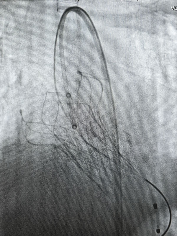 经过充分的术前准备,两台手术由心血管外科赵永波副主任主刀,赵伟超主治医师、侯五辉主治医师密切配合,选择经皮股动脉穿刺,预埋缝合器,术中反复造影,准确定位释放瓣膜,术后造影及超声提示人工瓣膜开启功能良好。为确保术中安全,体外循环小组全程保驾护航。患者生命体征平稳,术后一日均转出监护室。