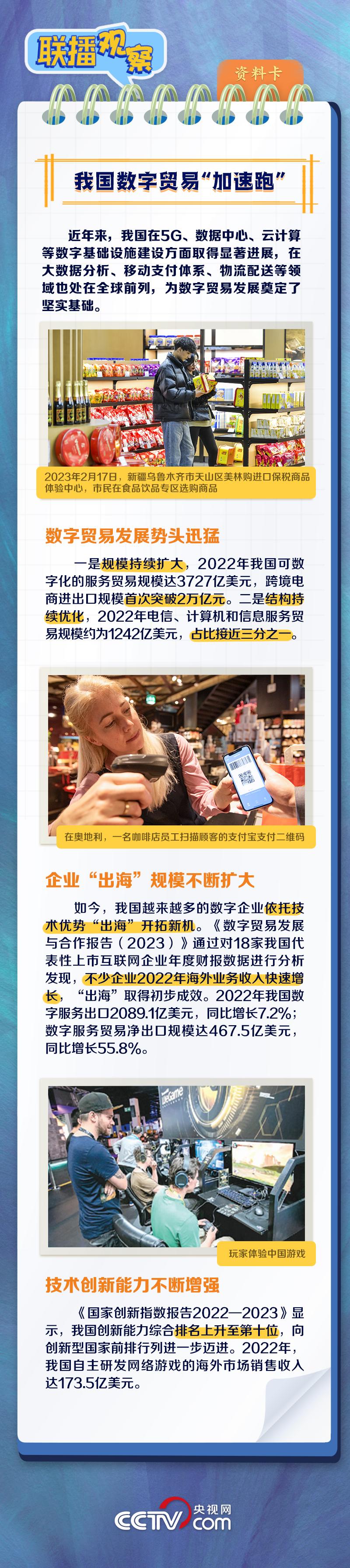 “当前,全球数字贸易蓬勃发展,成为国际贸易的新亮点。”11月23日,习近平主席向第二届全球数字贸易博览会致贺信,回顾了近年来中国为全球数字贸易蓬勃发展付出的努力,并对与会各方寄予厚望。