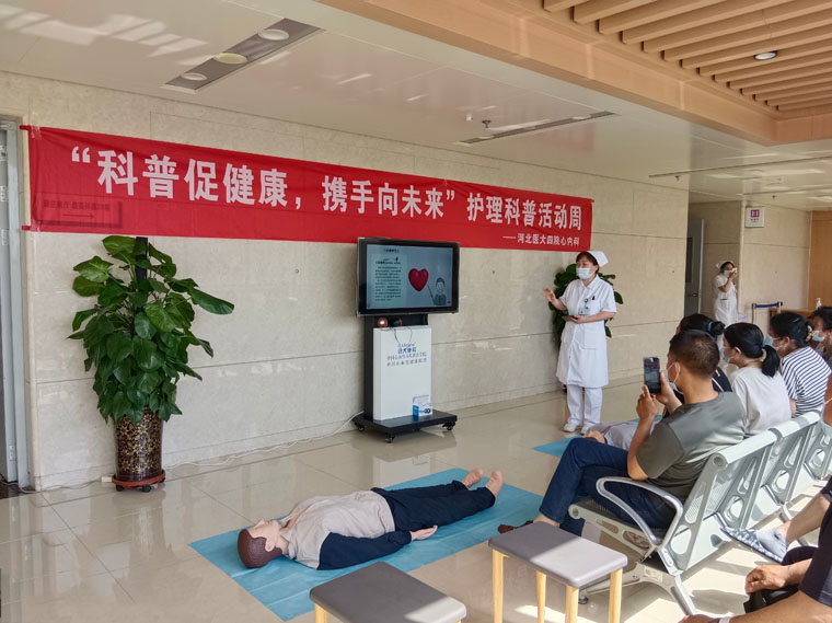 在用药方面,团队率先在全院开展口服药物按顿发放,并由责任护士为患者宣教,制作用药卡片,确保患者掌握用药剂量及方法,保证用药安全。团队成员制定了纸质、电子宣教单,并开展了多种形式的患教活动,包括下乡、进社区、进学校以及在科室举办各项护理科普活动,大力宣传心脏相关疾病的防治方法,普及心肺复苏术急救技能,帮助公众提升健康意识和自救、互救的能力。此外,科室随访团队定期开展电话随访工作,陆续随访人数达500人次,进一步降低冠心病患者心血管不良事件发生率及再住院率。